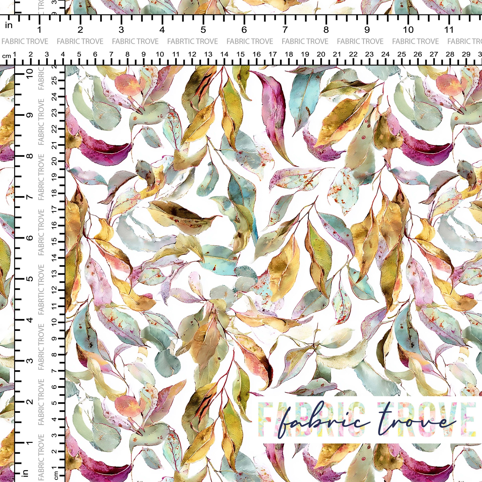 Add rustic Australian charm to your projects with Vintage Leaves, a beautiful print featuring vintage rustic gum leaves on a white background on premium cotton fabric. - - - - -