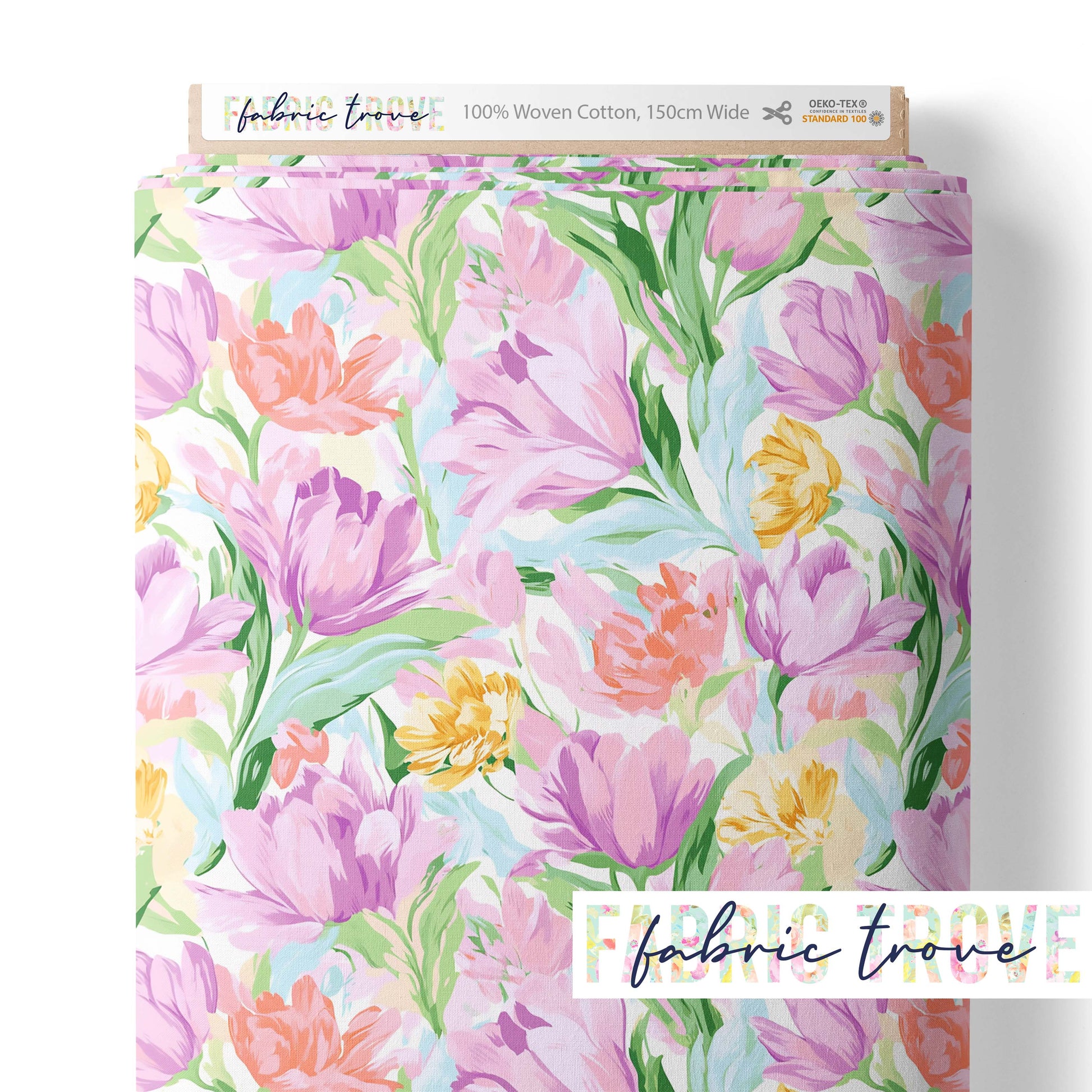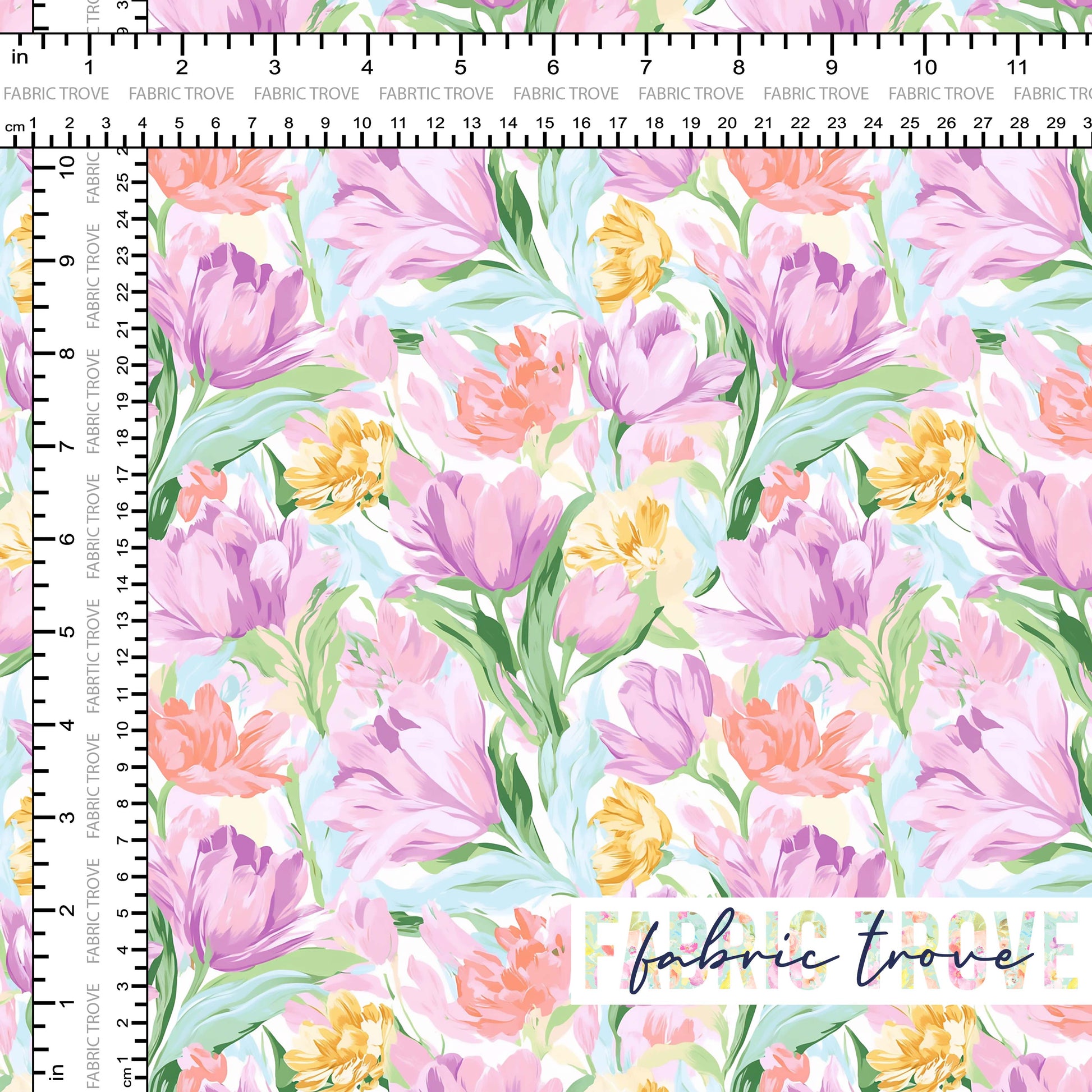 Add gentle beauty to your projects with Tulip Blooms, a beautiful print featuring a soft pastel tulip field on premium cotton fabric.