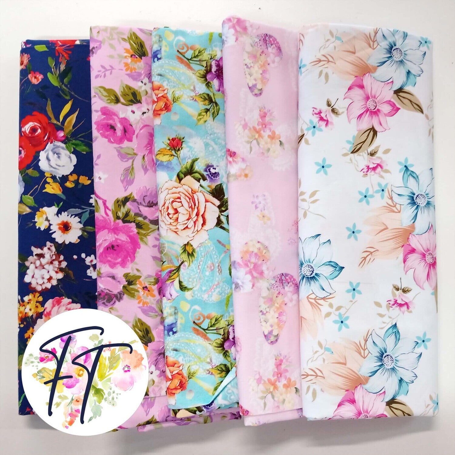 All scrap packs are in stock and ready to ship. You will receive 5 pieces of fabric that are selected randomly from our huge range of Floral themed designs. Each piece is between 23-45cm by 150cm wide. Each pack contains at least 1.3 metres in total of fabric.